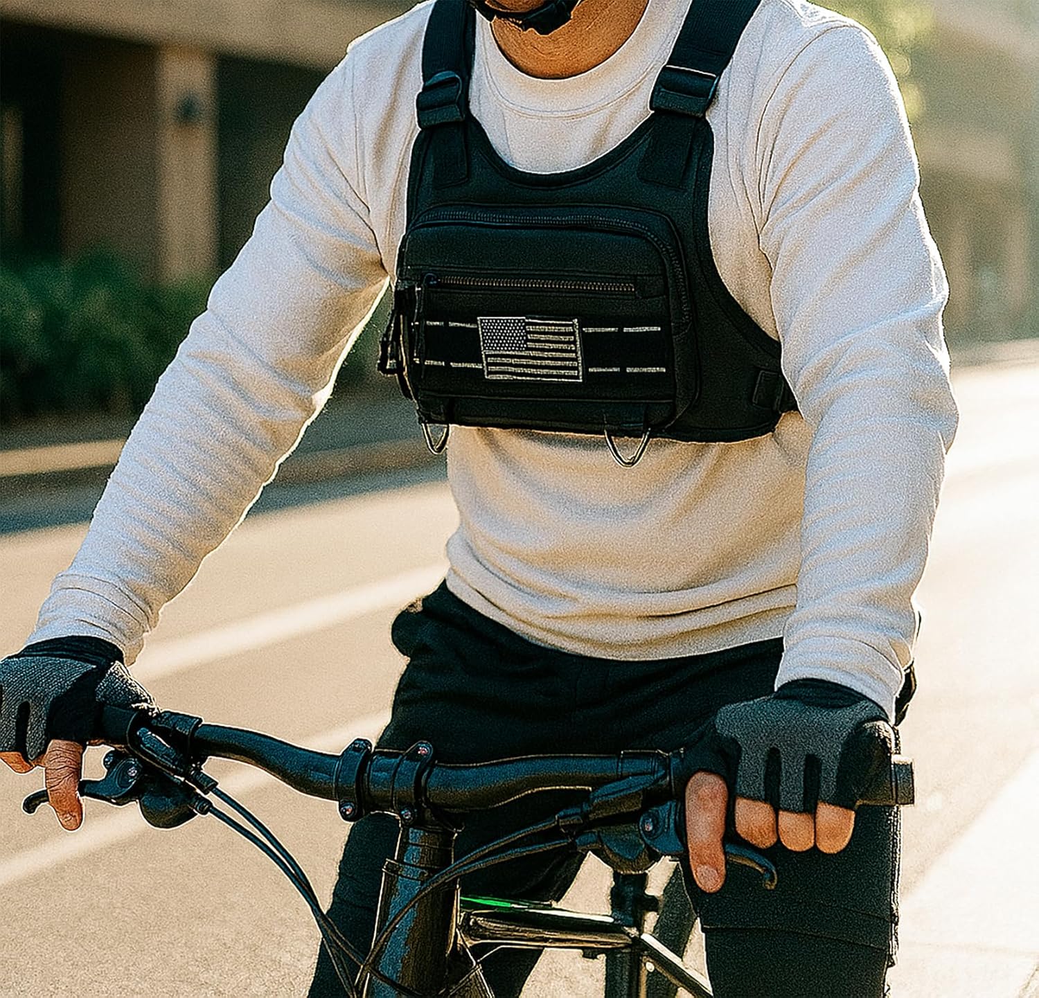 Tactical Chest Bag, Breathable Molle Sport Chest Rig Bag Vest Pouch with Reflective Strip and Portable Hooks for Workouts, Cycling, Hiking, Hunting